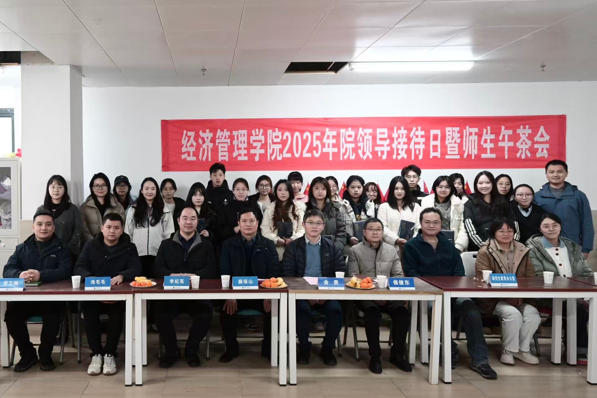 (通讯员:徐媛)为更好畅通师生交流渠道,增强学院师生凝聚力,搭建服务学生成长成才与学院民主办学的平台,12月25日中午,2025年院领导接待日暨师生午茶会在学生宿舍二组团“经鹰驿站”举行。学院党委书记薛保山、副书记李纪亮、副院长金贵、侯俊东、池毛毛出席活动,本科生教育办公室、研究生教育办公室、学工组有关教师及本研学生代表共三十余人参加活动。