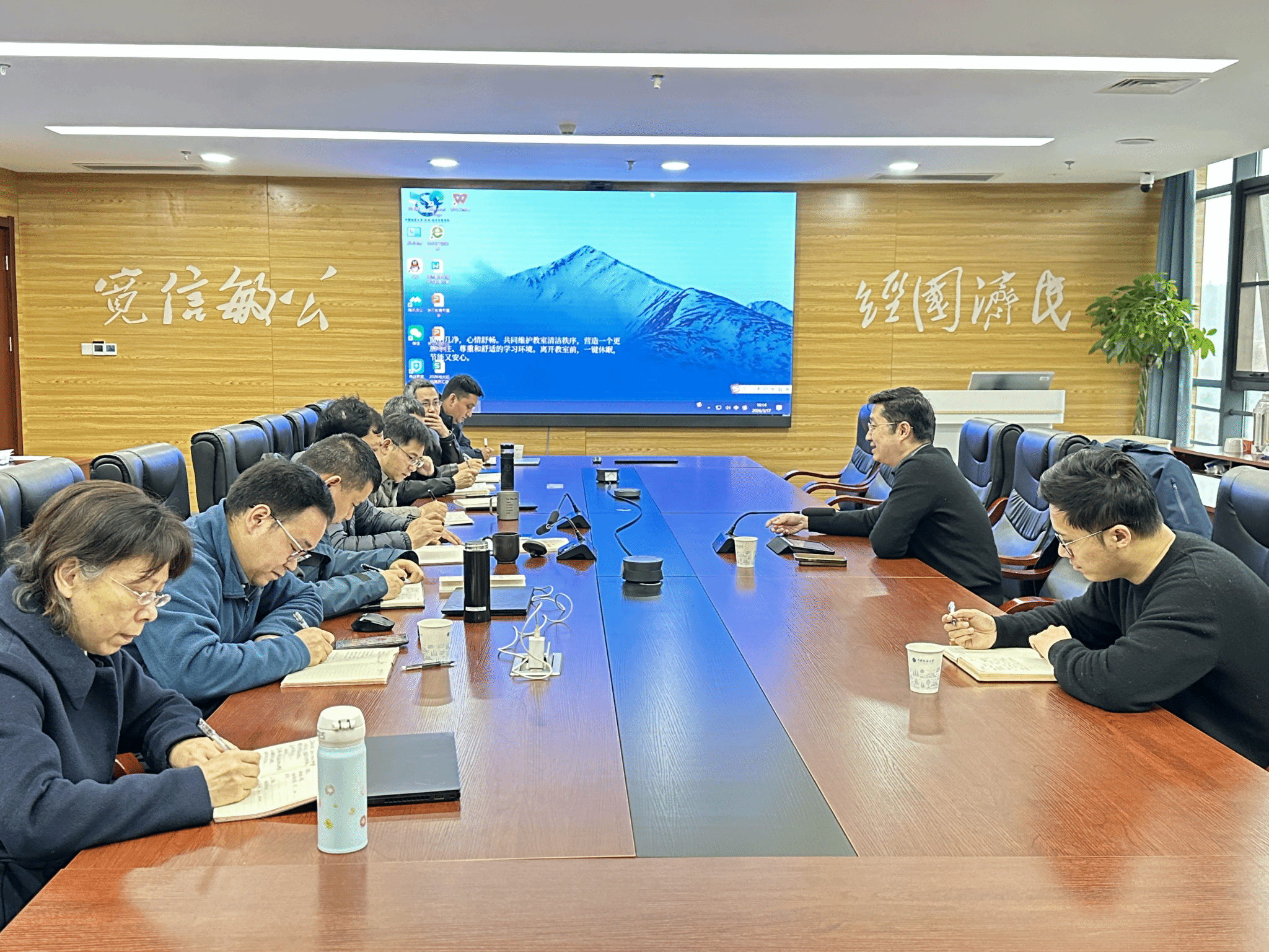 夏帆强调,学院要聚焦核心任务统筹推进,重点抓好四方面工作:一是抢抓低空经济发展机遇,依托学校优势学科资源,联合相关企业与高校,在政策研究、产业规划、标准制定等方向谋划特色增长点,推动合作从“会议交流”向“实体落地”转变;二是扎实做好学科建设,科学研判学科基础与短板,制定工作预案,以标志性成果提升学院整体地位与资源获取能力;三是聚力平台建设与人才培养,积极申报“自然资源数字经济学院”等国家级、省部级特色平台,以平台建设汇聚资源、推动交叉融合。稳步推进中德国际合作办学,优化专硕学位点布局。拓展高水平培训项目,提升办学质量与效益;四是强化师资队伍建设保障,紧扣重点项目与重大成果推进,主动争取学校政策支持,以务实举措充分调动教师干事创业积极性,为学院各项工作落地见效筑牢人才支撑。