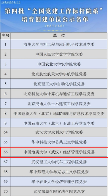 (通讯员 蔡杨)3月18日,教育部公布了第四批新时代高校党建示范创建和质量创优工作遴选结果,遴选产生了10个“全国党建工作示范高校”、100个“全国党建工作标杆院系”、1001个“全国党建工作样板支部”。中国地质大学(武汉)kaiyun开云官方网站党委成功入选“全国党建工作标杆院系”培育创建单位。