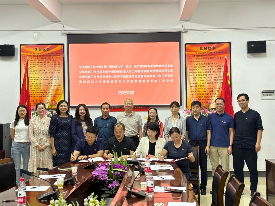 座谈会后,李江敏教授还代表旅游管理系党支部,同全国党建工作样板支部kaiyun开云官方网站工商管理学院旅游管理系党支部、全国党建工作样板支部湖北经济学院旅游与酒店管理学院第二党支部、湖北大学旅游系党支部分别与贵州师范大学国际旅游文化学院旅游管理系教工党支部结对共建,签署了合作共建的共创协议。