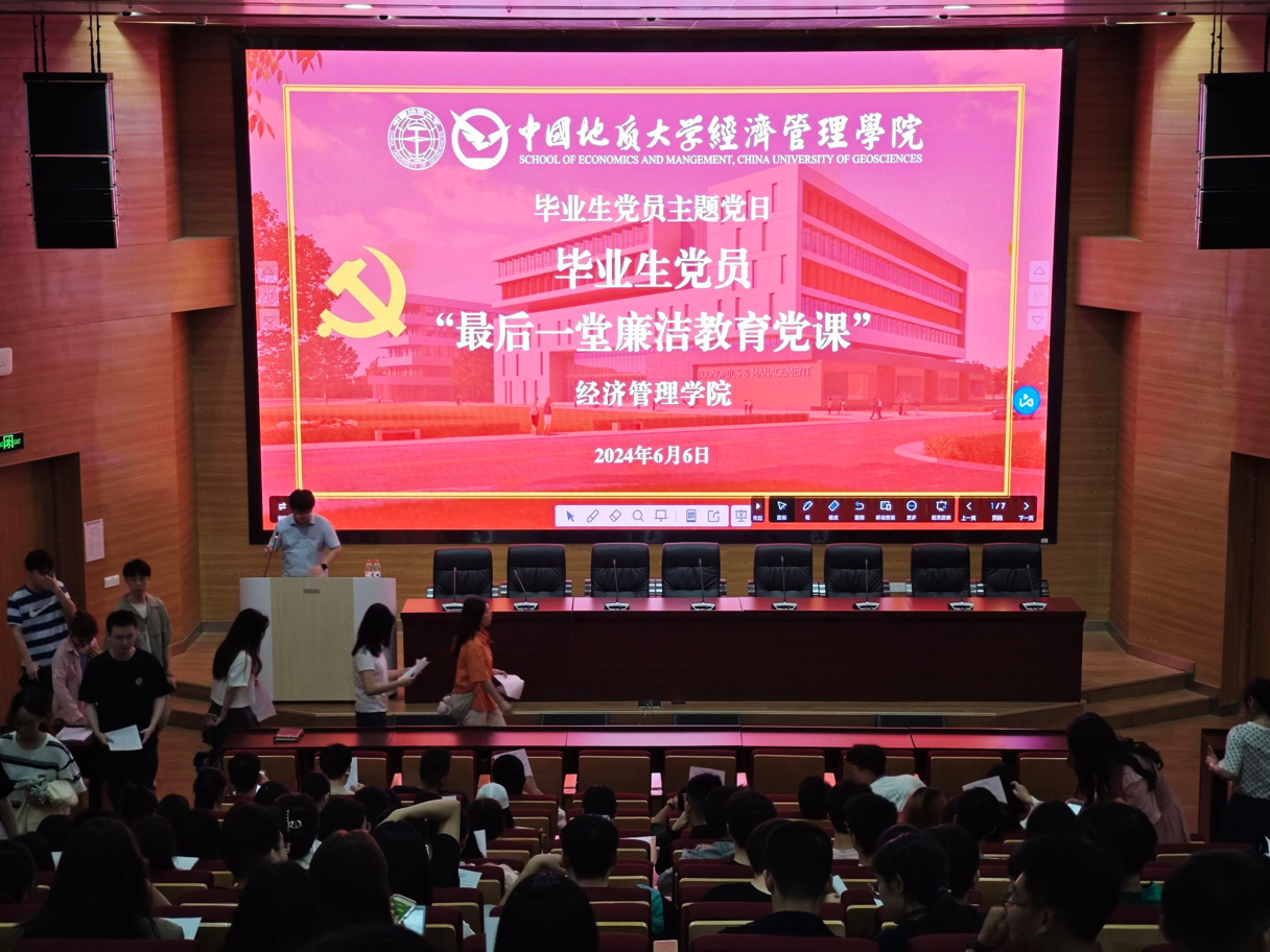 本次党课是毕业生党员离校前的“最后一堂廉洁教育党课”,承载着经管学院对毕业生党员的殷切期望与美好祝福。望毕业生党员筑牢理想信念根基、守住拒腐防变底线,练就过硬本领、发扬斗争精神,厚植家国情怀、提升政治素养,始终铭记“宽信敏公,经国济民”的院训,系好人生“第一粒扣子”,走好迈向社会的第一步,为党和人民事业拼搏奉献,弘扬地大精神,展现经管风采,在新时代新征程上留下无悔的奋斗足迹!(审核 杨昌锐)