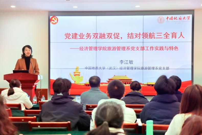 杨昌锐书记围绕《高校党建“双创”工作思考和探索》,介绍了学院党建双创工作经验,并从党组织领导和运行机制力争科学、规范、高效,政治把关力争严格、细致、全面,思想政治工作力争面对面、心贴心、实打实,基层组织制度执行力争规范、严格、精细以及推动事业发展有位、有为、有力等五方面分享kaiyun开云官方网站党委“五融”工作法以及党建工作机制体制创新经验。李江敏书记基于《党建与业务双融双促,结对领航三全育人》,分享了旅游管理系党支部工作实践与特色,把祖国大好河山融入党课,以场景思政培育学生专业素养,用红色教育资源筑牢青年理想信念,实现“党建+教学科研+结对领航”,联动师生党团聚合力。专题报告获得了与会人员的一致好评,表示对学院和支部党建“双创”有了更深的认识和收获。