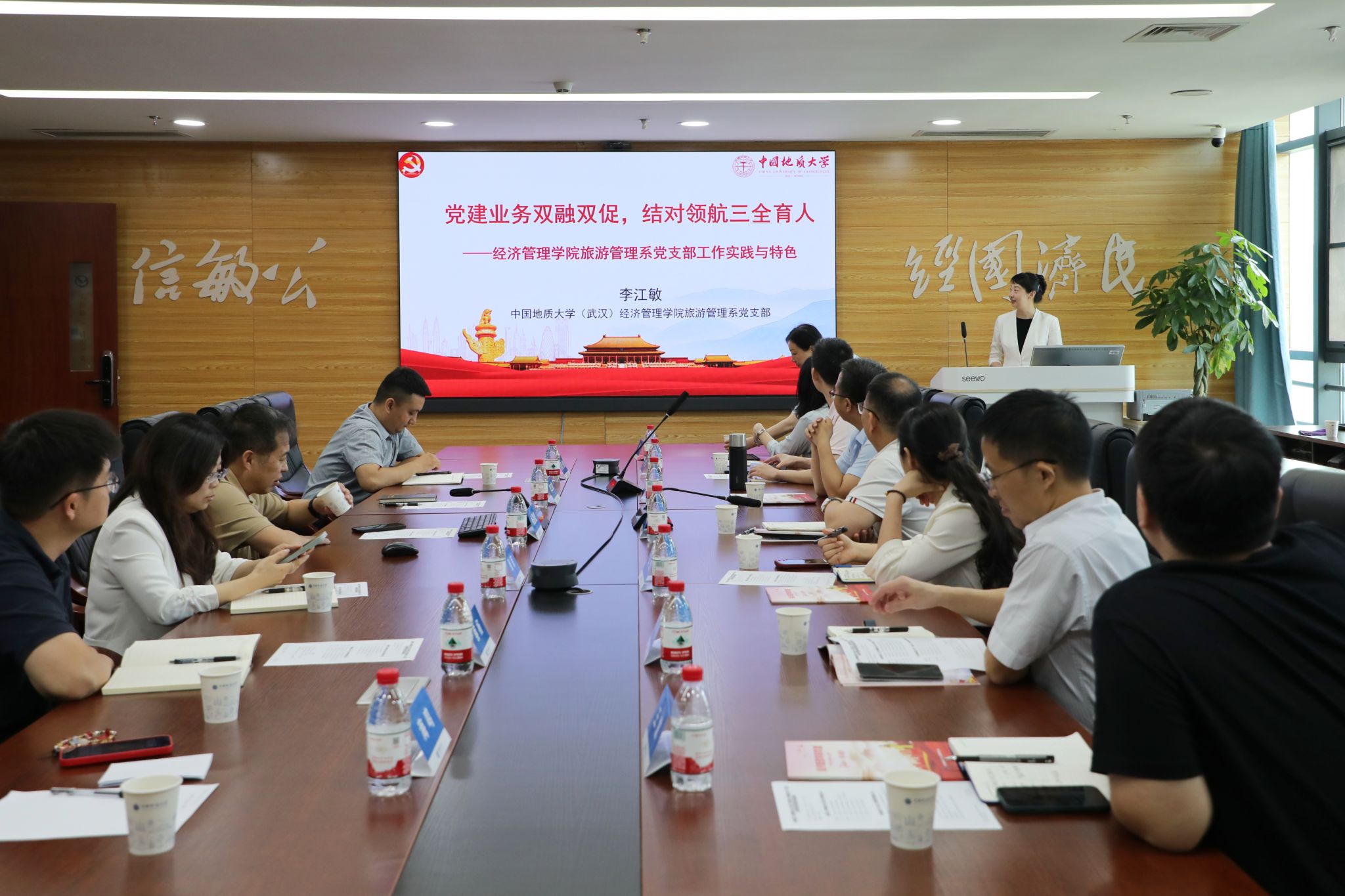 随后,开云官网旅游管理系党支部书记李江敏教授作《党建业务双融双促,结对领航三全育人——kaiyun开云官方网站旅游管理系党支部工作实践与特色》专题分享,结合党支部书记“强国行”实践经历,详细阐述了党支部在党建与业务融合、结对育人等方面的工作经验和特色做法。