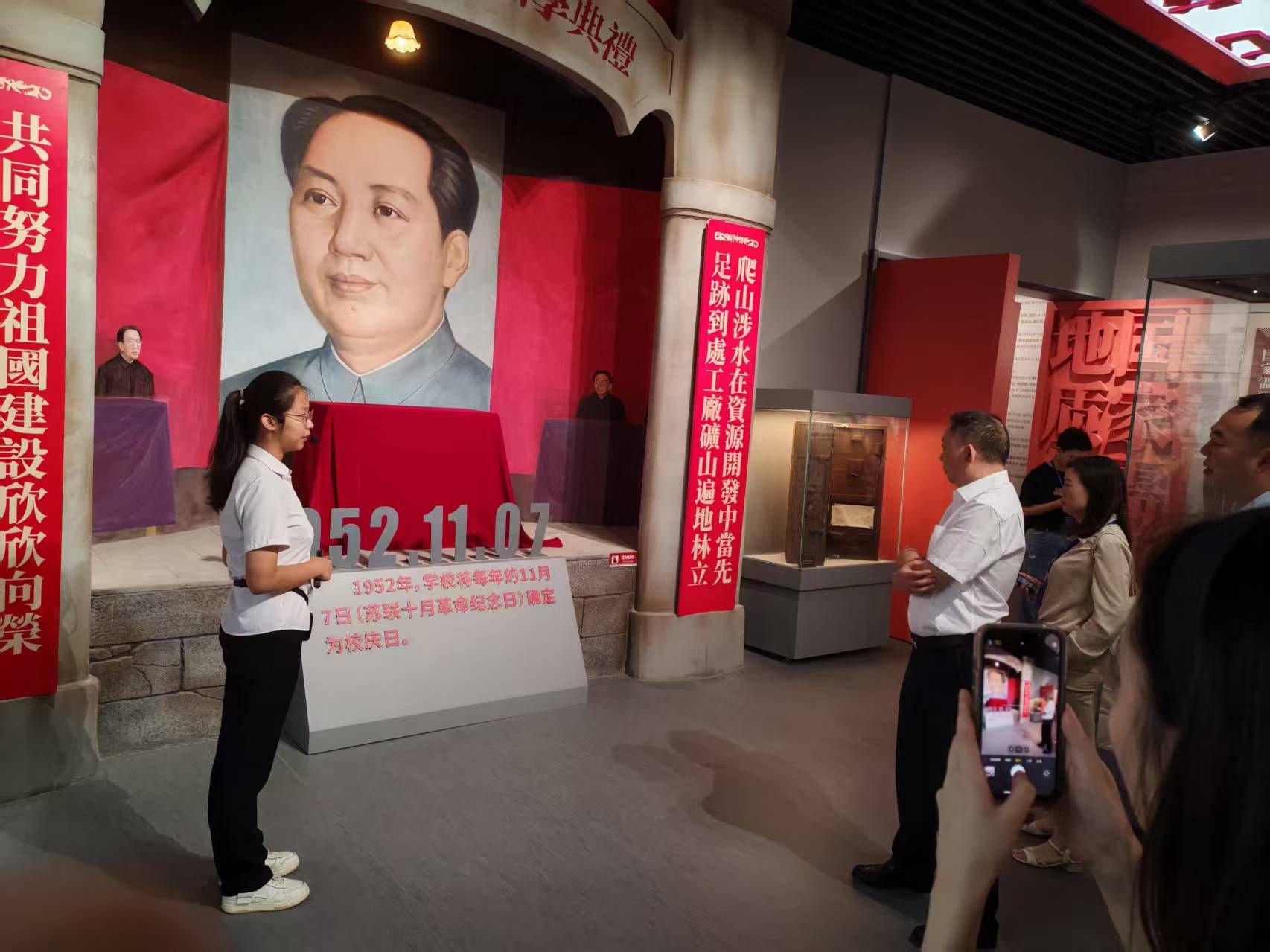 上午9时30分,体验营首站走进中国地质大学(武汉)南望山校区校史馆。讲解员通过历史照片、文献实物与数字化展陈,系统梳理了学校从1952年北京地质学院创立到迁址武汉、更名为中国地质大学(武汉)的七十余载发展历程,展示了学校在地质勘探、资源环境、珠宝科技等领域的卓越贡献,以及“艰苦朴素,求真务实”校训背后的精神传承。参观结束后,体验营转战未来城校区,参观了kaiyun开云官方网站大楼及智慧教室,实地感受了学院现代化的教学环境。