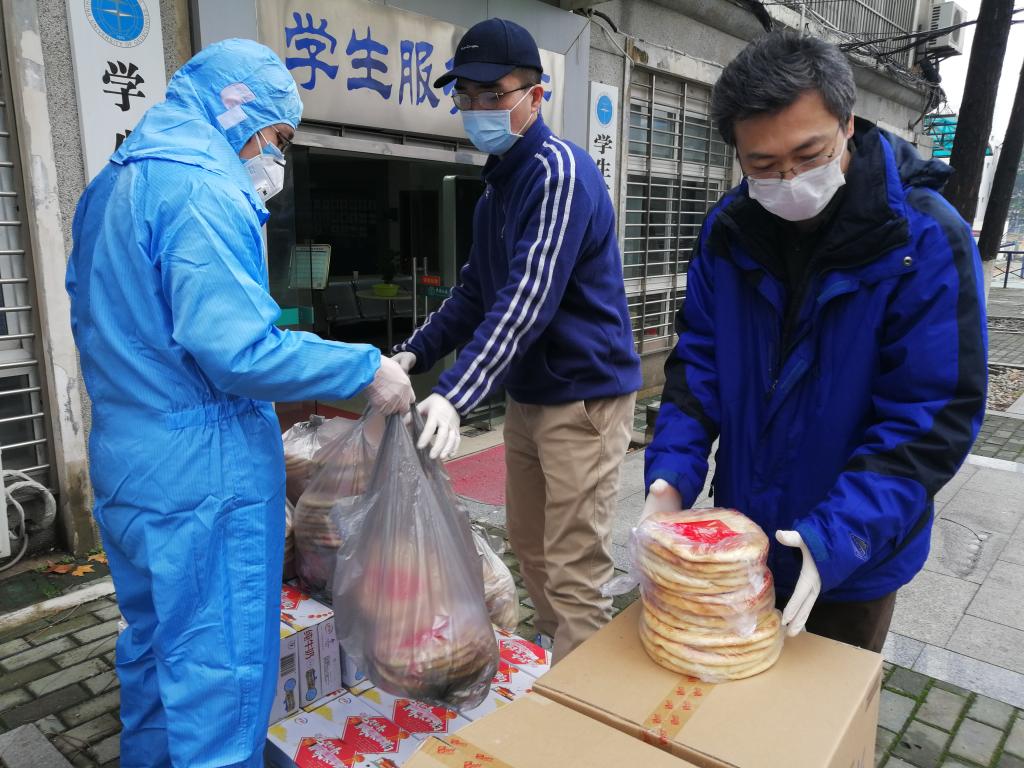 在武汉封城、物资难寻等重重困难中,我校kaiyun开云官方网站迪力木拉提•亚力坤等4位新疆籍同学远在家乡,在老师、同学和校友们的共同努力下,为期5天内,联系到3家供货商的馕、牛奶、烤鸡腿、香肠、方便面、干果、抽纸巾等12种硬核援助物资,全部提供给了我校学生工作处,并委托学工处将物资分发给留校的同学们。26日下午,物资抵达学校,经学工处、保卫处和经管学院的老师们前期协调和有力组织下,留校学生临时党支部的同学积极配合,有序将物资分发到了每一位留校同学的手中。